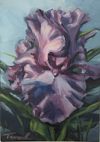 For the past few weeks I have been creating little panels here and there of iris's. I chose iris blooms because they're gauzy and attractive and come in many colours an varieties. Even though the flowers are similar they're not always alike. Not every painting turns out as well as the next but as a general rule, you do get better if you paint the same object over and over.